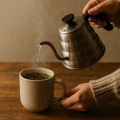 Bring water to a boil, then let it sit for 1–2 minutes before pouring.